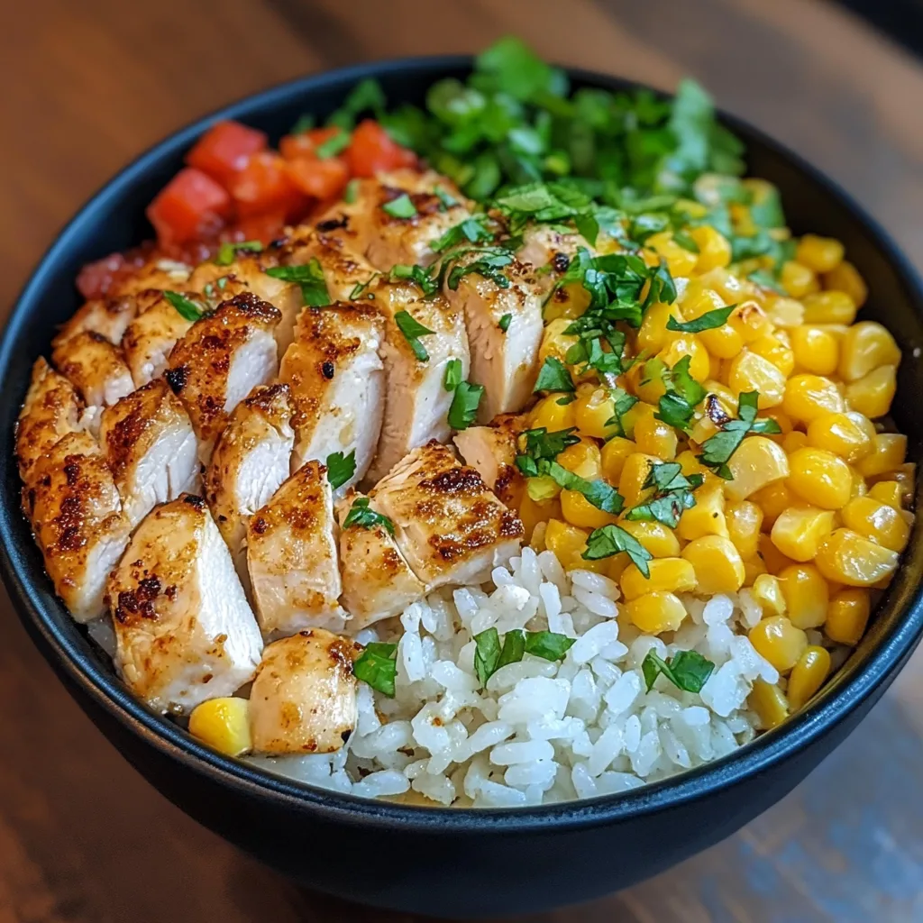 First of all, selecting fresh and high-quality ingredients is essential to achieving the best results. For starters, opt for boneless chicken thighs for a juicier texture; however, chicken breasts are a suitable alternative if you prefer a leaner option. Additionally, fresh corn adds a natural sweetness and crispness to the bowl, though frozen corn can be used when necessary. A zesty rice base like Cilantro Lime Rice adds a touch of acidity, balancing the flavors in every bite.
