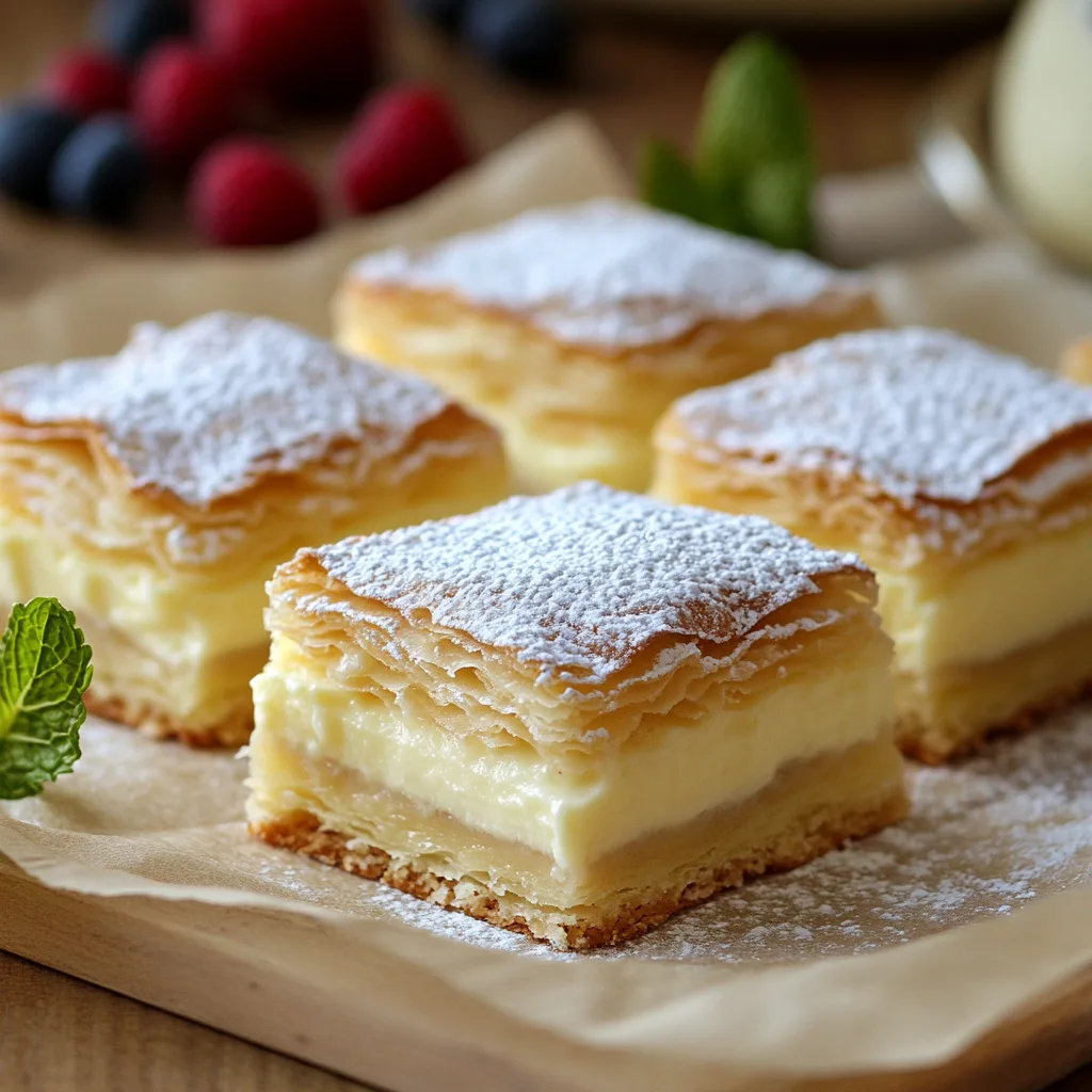 - Puff pastry: This is the most commonly used base for Vanilla Custard Cream Squares because of its light, flaky texture. Store-bought puff pastry works fine, but homemade pastry can elevate the dish. Learn how to make the perfect homemade puff pastry if you want to try it from scratch.
